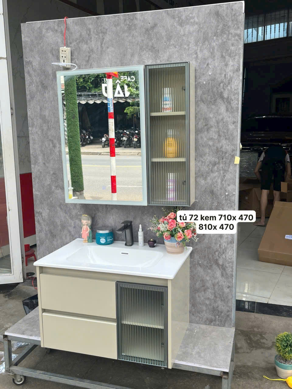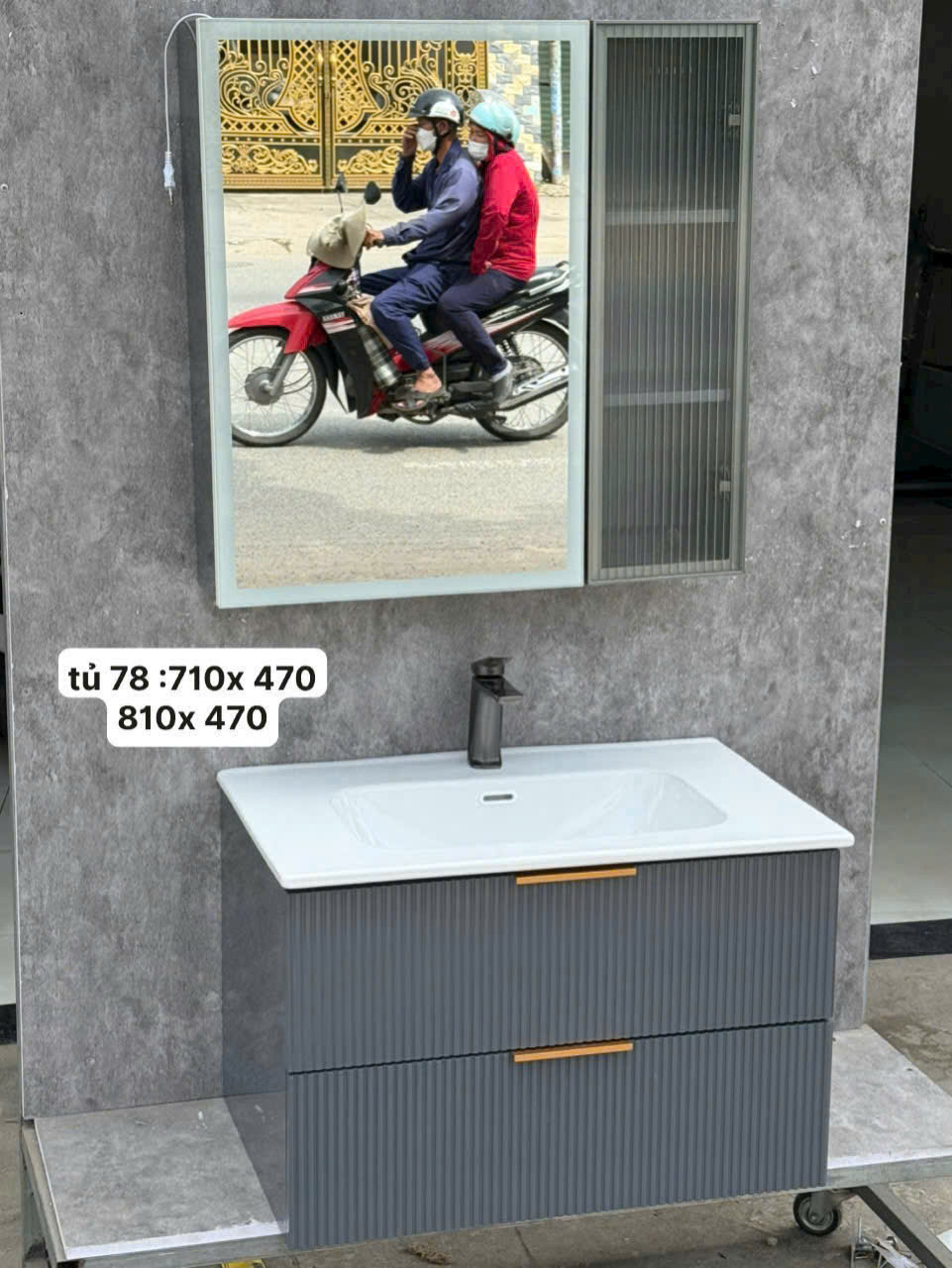 Kích thước 710*470cm và 810*470cm Tủ nhựa PVC cao cấp Mặt sứ trắng âm Tủ gương đèn led cao cấp