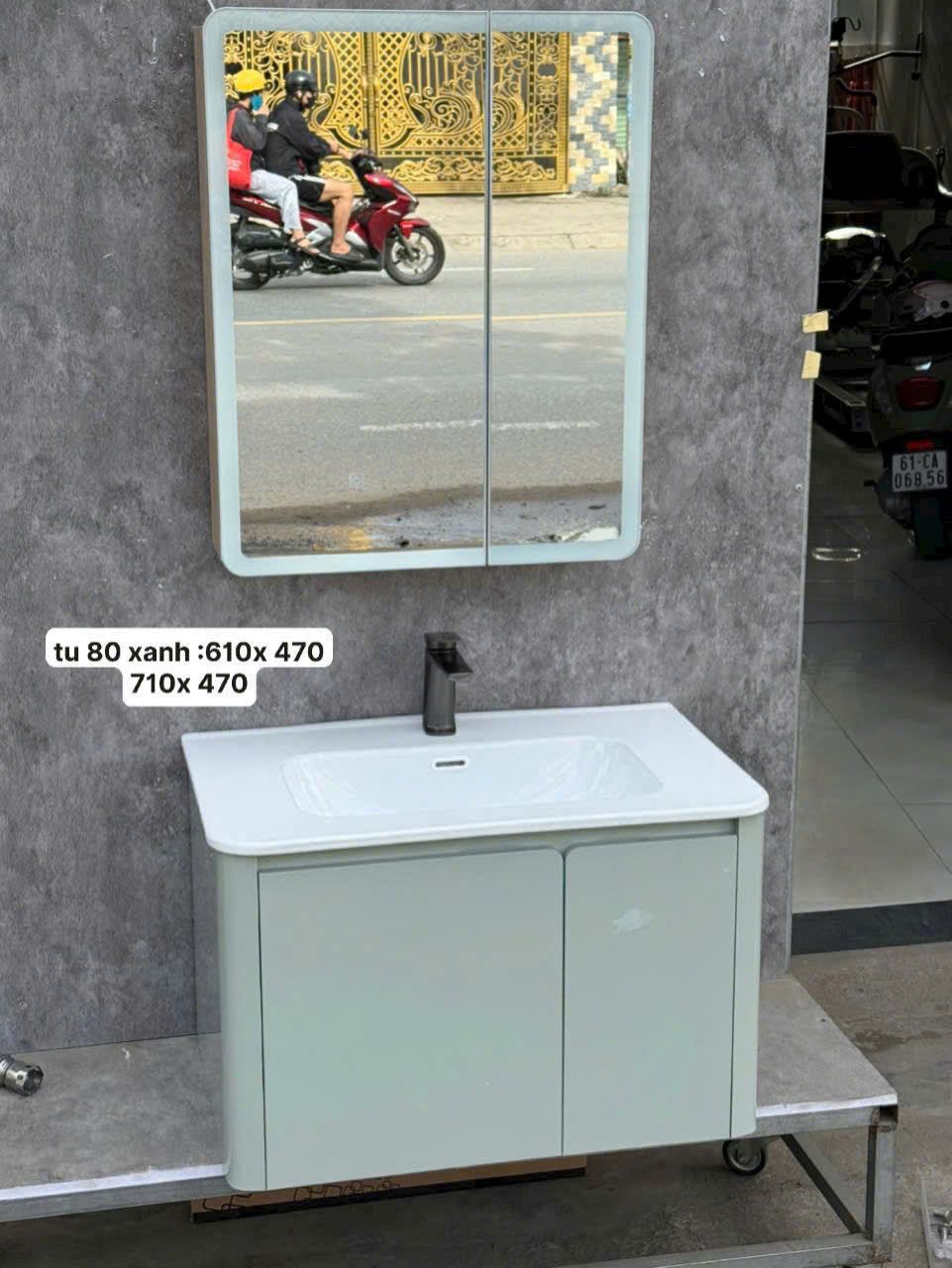 Kích thước 810*470cm Tủ nhựa PVC cao cấp Mặt sứ trắng âm Tủ gương đèn led cao cấp